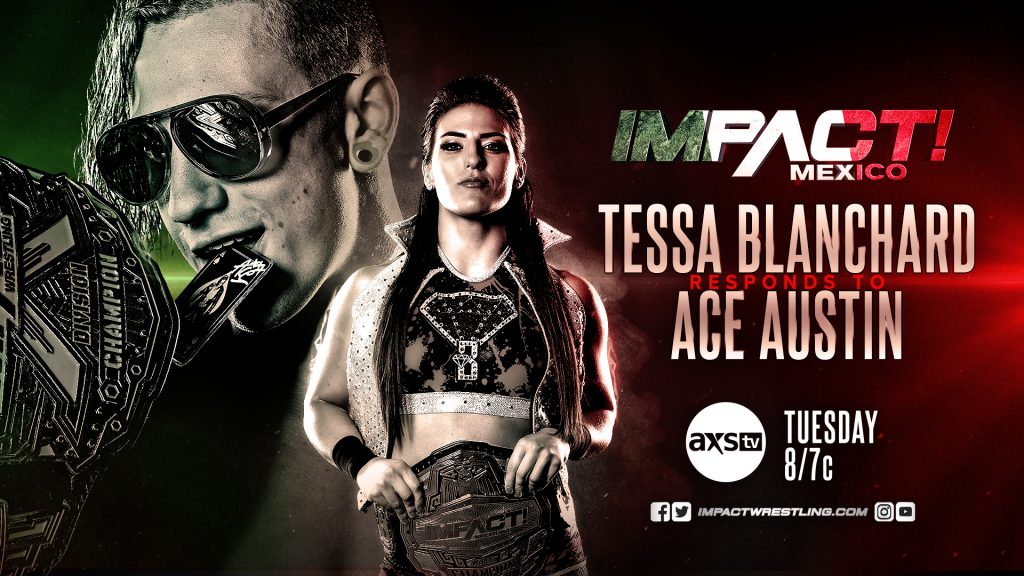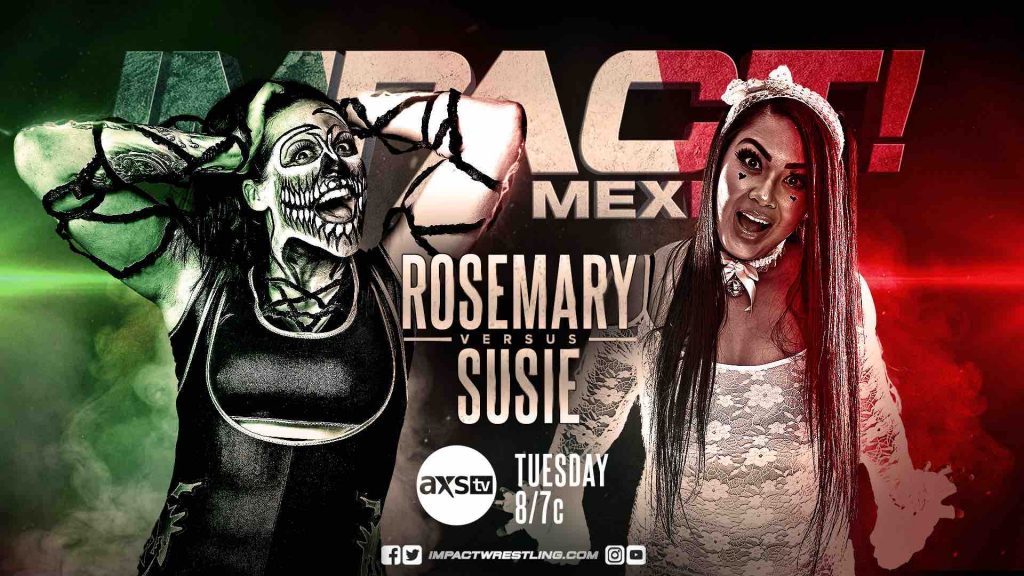 Tonight at 8/7c on AXS TV & Twitch, don’t miss a new episode of IMPACT! from Mexico City. Rosemary looks to awaken Susie’s past by facing her in what Rosemary is calling a “friendly exhibition”. Daga & Dr Wagner Jr are out for revenge after oVe attacked them on last week’s edition of IMPACT!. Vikingo looks to continue his momentum when he battles TJP. Plus, World Champion Tessa Blanchard responds to the comments made by her Sacrifice opponent, X-Division Champion Ace Austin and much more.