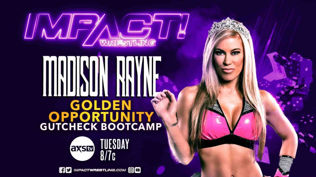Week Two of Gut Check and week two of Madison Rayne‘s Golden Opportunity with come together for a special event this Tuesday on IMPACT! Knockouts veteran Madison Rayne is set to bring her expertise to Gut Check as the competitors go through a gruelling bootcamp. The search for IMPACT Wrestling’s next young star continues.