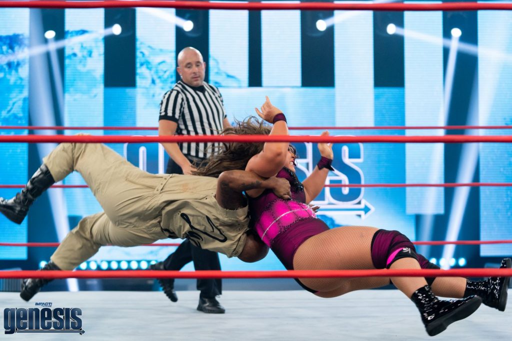Genesis on IMPACT Plus was an unforgettable night of action. In the main event, Moose and Willie Mack competed in one of the most brutal and violent “I Quit” Matches in professional wrestling history. IMPACT veterans and newcomers alike tore the house down in the returning Super X-Cup Tournament. And Jordynne Grace battled the legendary Jazz in a highly-anticipated dream match. Relive the action from every angle in this breathtaking ringside photo gallery!