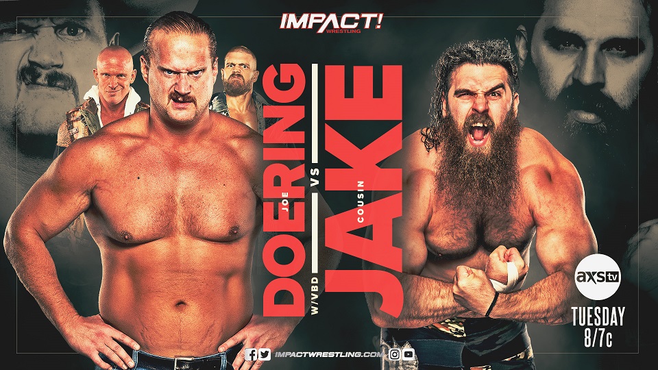 The war rages on this Tuesday as Violent By Design‘s Joe Doering goes one-on-one with a vengeful Cousin Jake. Last week on IMPACT!, Eric Young defeated Rhino just days after the hardcore Old School Rules match at Hard To Kill, but that wasn’t enough as he orchestrated yet another post-match beatdown on Rhino and Jake. Will Violent by Design continue to run roughshod over IMPACT Wrestling or can Cousin Jake exact a measure of revenge?