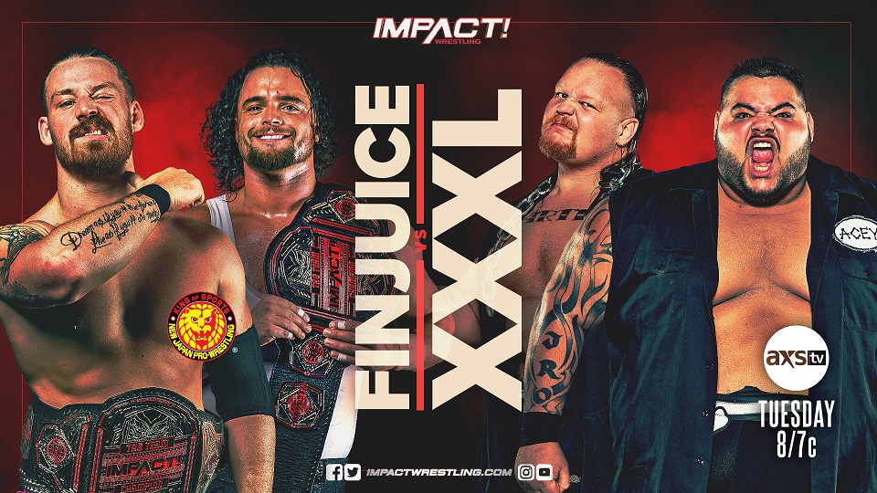 This past Saturday at Sacrifice, NJPW’s FinJuice made history when they defeated The Good Brothers to become the new IMPACT World Tag Team Champions. But the work is far from over for David Finlay and Juice Robinson as they must now turn their attention to the largest tag team in IMPACT Wrestling, XXXL. Will FinJuice continue to ride their wave of momentum or will Larry D and Acey Romero halt them in their tracks? Find out this Tuesday on IMPACT!