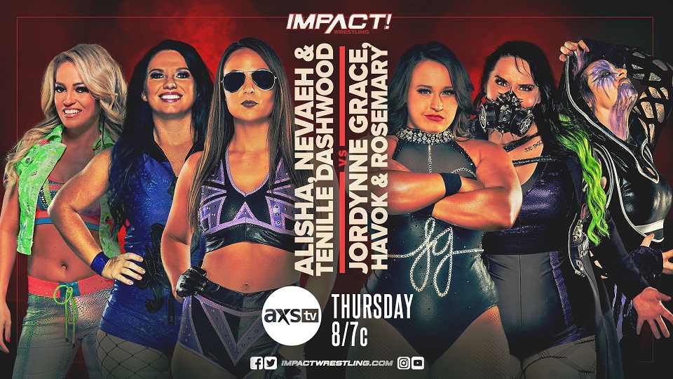 Before they collide in the #1 Contender Knockouts Weapons match this Saturday at Hardcore Justice, the competitors will give us a preview of things to come in a six-Knockout tag team match. Jordynne Grace, Havok and Rosemary battle Tenille Dashwood, Nevaeh and Alisha in what is sure to be a huge momentum builder for Saturday’s high-stakes bout on IMPACT Plus.