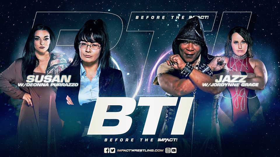 As Jazz prepares to put her career on the line against Knockouts Champion Deonna Purrazzo at Hardcore Justice, she must first battle Susan in singles action on BTI. Will the pro wrestling legend be able to take Susan out of the equation just days before the biggest match of her career? BTI gets the action started early, Thursday nights at 7/6c on AXS TV. Plus, tune in for in-depth previews, exclusive interviews and behind-the-scenes access just one hour before IMPACT! goes on the air.