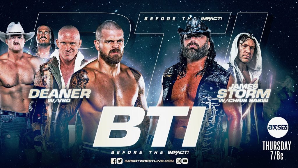 BTI kicks off your night, Thursdays at 7/6c on AXS TV. Tune in for everything you need to know ahead of IMPACT!, featuring in-depth previews, exclusive interviews, behind-the-scenes access and an exclusive match. Following Violent By Design’s victory at Rebellion, can James Storm strike back when he goes one-on-one with Deaner?