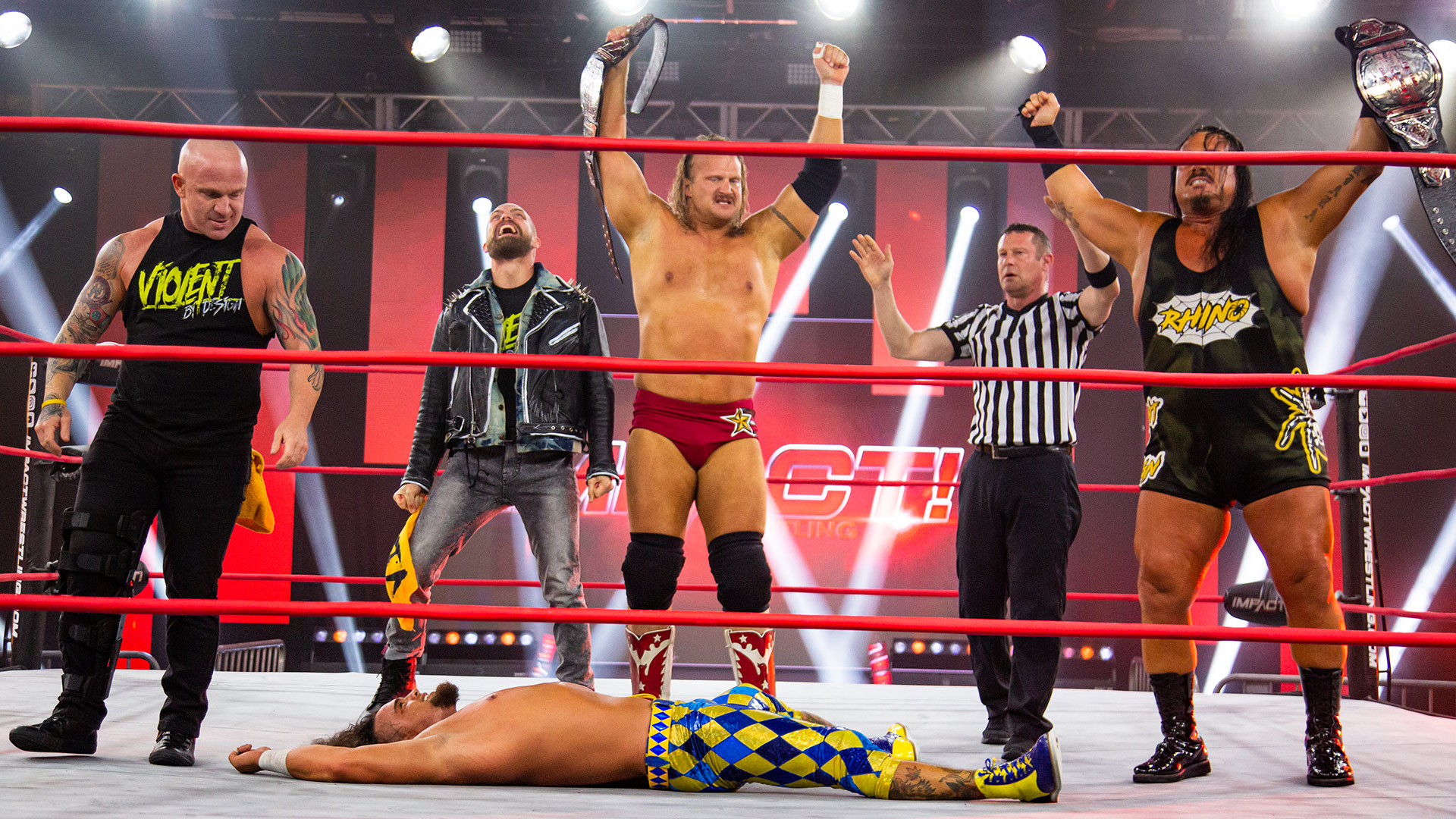 After the match, Violent By Design make their way to the ring. In a shocking turn of events, Rhino “Calls His Shot” and trades in the Call Your Shot trophy for a Tag Team Title opportunity! FinJuice must now defend the IMPACT World Tag Team Championships for the second time tonight!