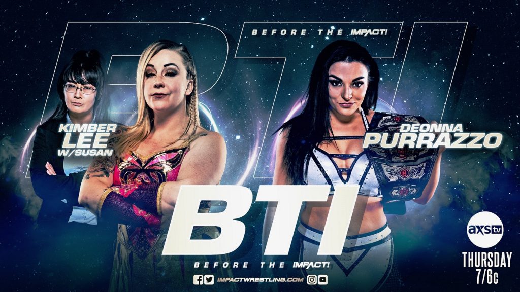 Knockouts Champion Deonna Purrazzo made one thing abundantly clear last week – she’s done with Susan and Kimber Lee. Following a dominant victory over Susan, Purrazzo refused to let go of the Fujiwara Armbar, leading to physical involvement from a distraught Kimber Lee. What will happen when these two former friends collide in this week’s BTI exlcusive match? Find out this Thursday at 7/6c on AXS TV!