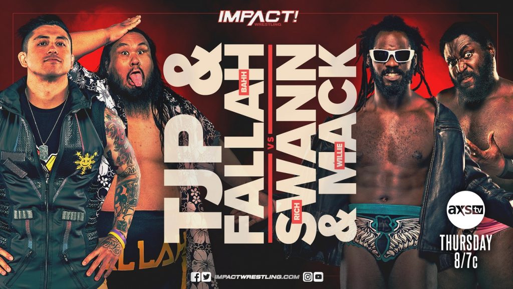 As Slammiversary draws near, IMPACT Wrestling’s tag team division continues to heat up. Following a verbal exchange inside Swinger’s Palace, TJP and Fallah Bahh will take on Rich Swann and Willie Mack in tag team action! TJP and Fallah have been on a roll as of late but standing in their way of a potential IMPACT World Tag Team Title opportunity is Rich Swann and Willie Mack. With everyone’s eye on the prize, who will score the all-important victory this Thursday on IMPACT?