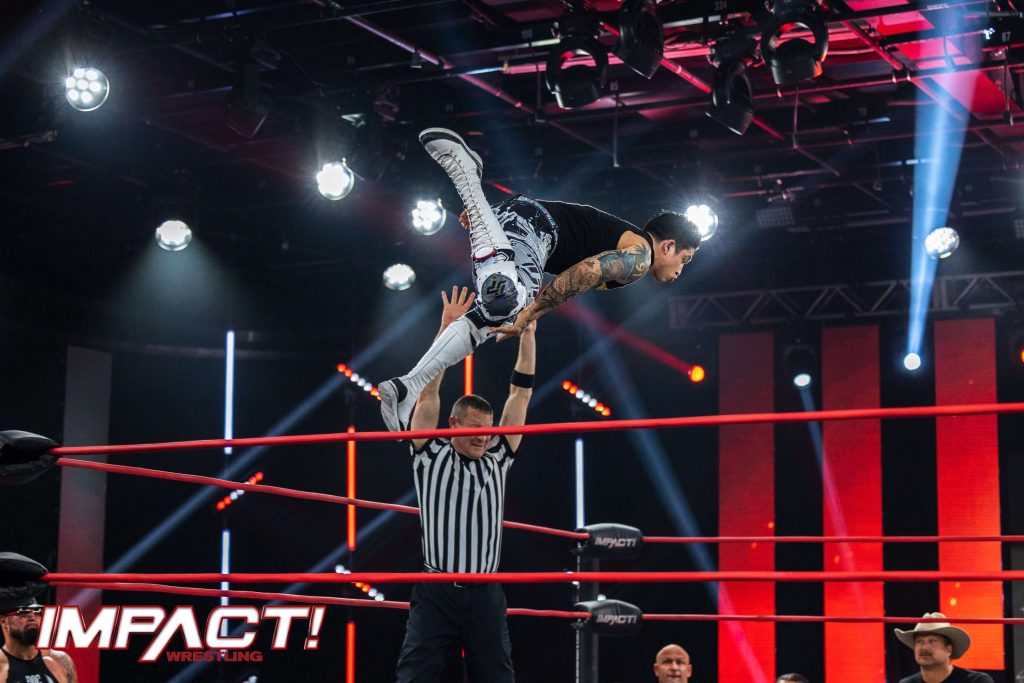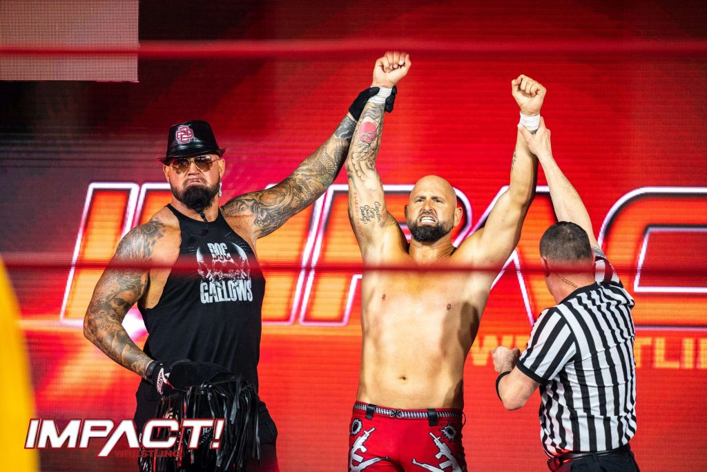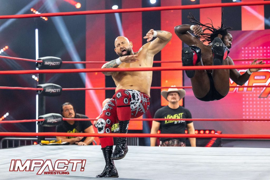 Relive all the action from the penultimate IMPACT! before Slammiversary in this stunning ringside photo gallery! After Jake Something was on the receiving end of a 2-on-1 beatdown from Brian Myers and Sam Beale, Matt Cardona made his shocking return and evened the odds! Witness the brutality as W. Morrissey demolished not one, not two but three opponents simultaneously! Plus, Knockouts Champion Deonna Purrazzo issued an open challenge which was answered by “the coolest wrestler you’ll ever meet”, and more!