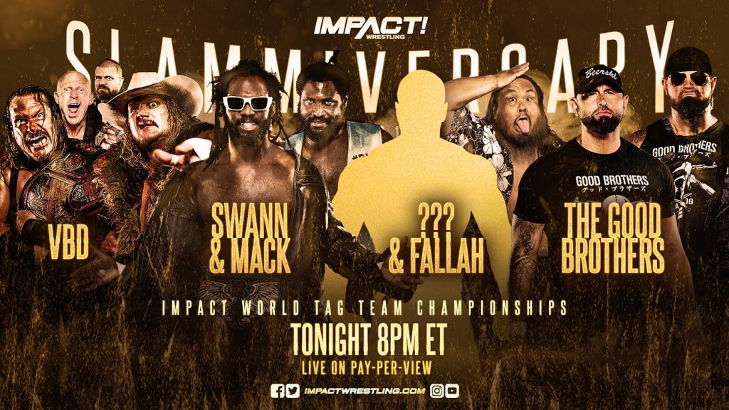 For once, it appears as though Violent By Design‘s plans have been thwarted. After the group laid out Rich Swann, Willie Mack, TJP and Fallah Bahh during their match to determine the #1 contenders for the IMPACT World Tag Team Titles, Anthem representative Tommy Dreamer made a huge announcement. At Slammiversary, Violent By Design must defend the gold against Rich Swann and Willie Mack, Fallah Bahh and a mystery partner, and The Good Brothers in a colossal four-way match! With the odds stacked against them, will Violent By Design leave Slammiversary as champions?