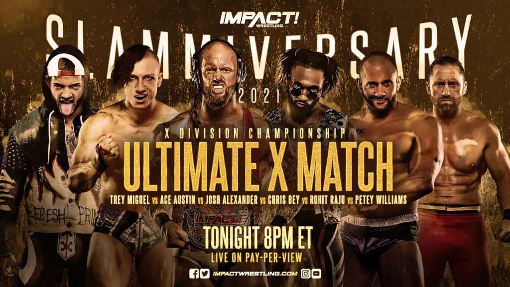 For the first time in over two years, one of the most dangerous match types in IMPACT Wrestling history returns. On July 17th at Slammiversary, Josh Alexander will defend the X-Division Title against Trey Miguel, Ace Austin, Chris Bey, Rohit Raju and Petey Williams in the high-risk, high-wire spectacle known as Ultimate X!