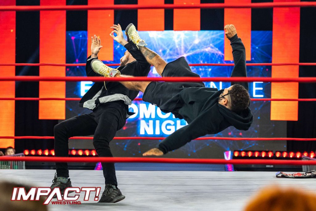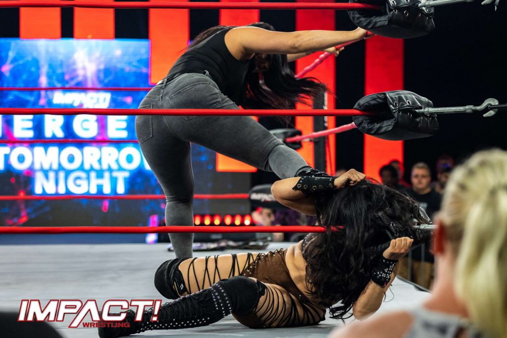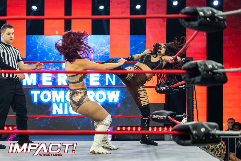 The final IMPACT! before Emergence tonight on IMPACT Plus was a wall-to-wall brawl unlike anything you’ve seen before. Relive every jaw-dropping moment in this must-see ringside photo gallery, including the colossal collision between Doc Gallows and Joe Doering that literally tore up the IMPACT Zone, Melina’s stunning performance in her IMPACT in-ring debut, and so much more!