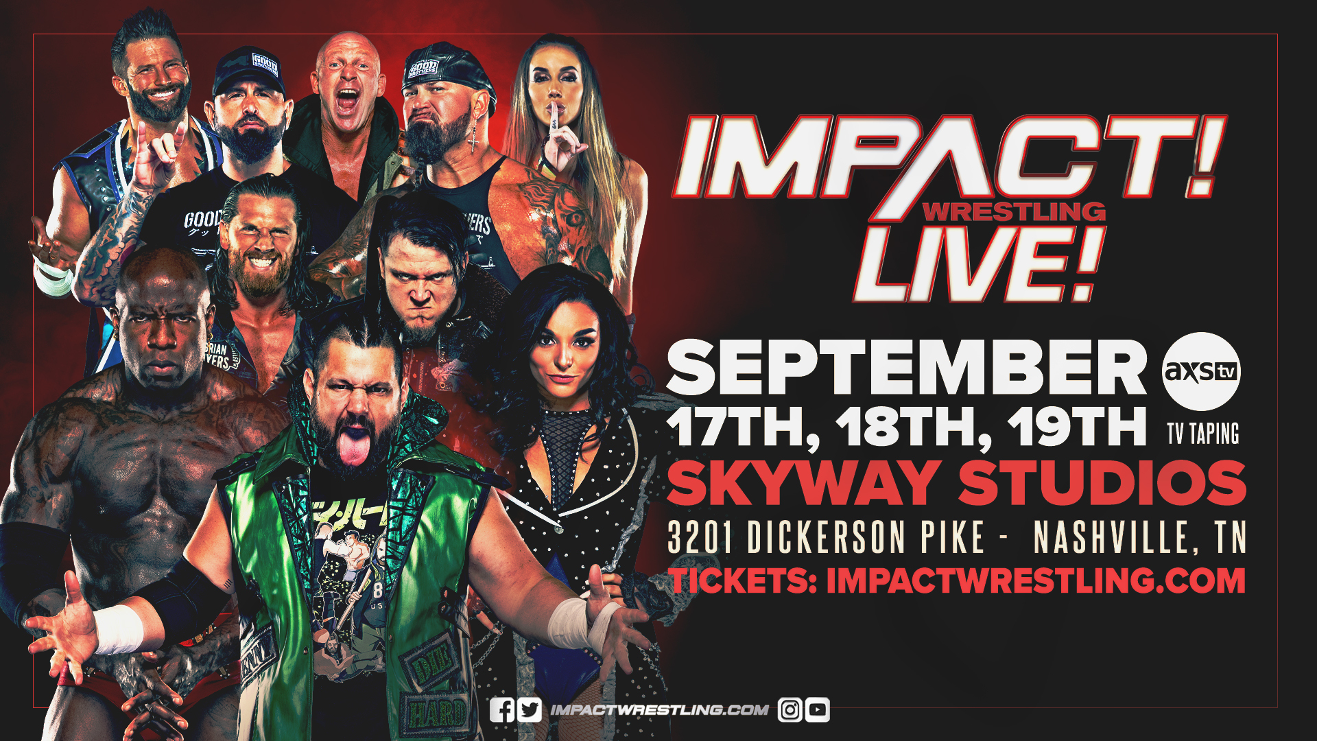 Tickets are ON SALE NOW for our IMPACT tapings in Skyway Studios in Nashville, TN on September 17th, 18th and 19th!