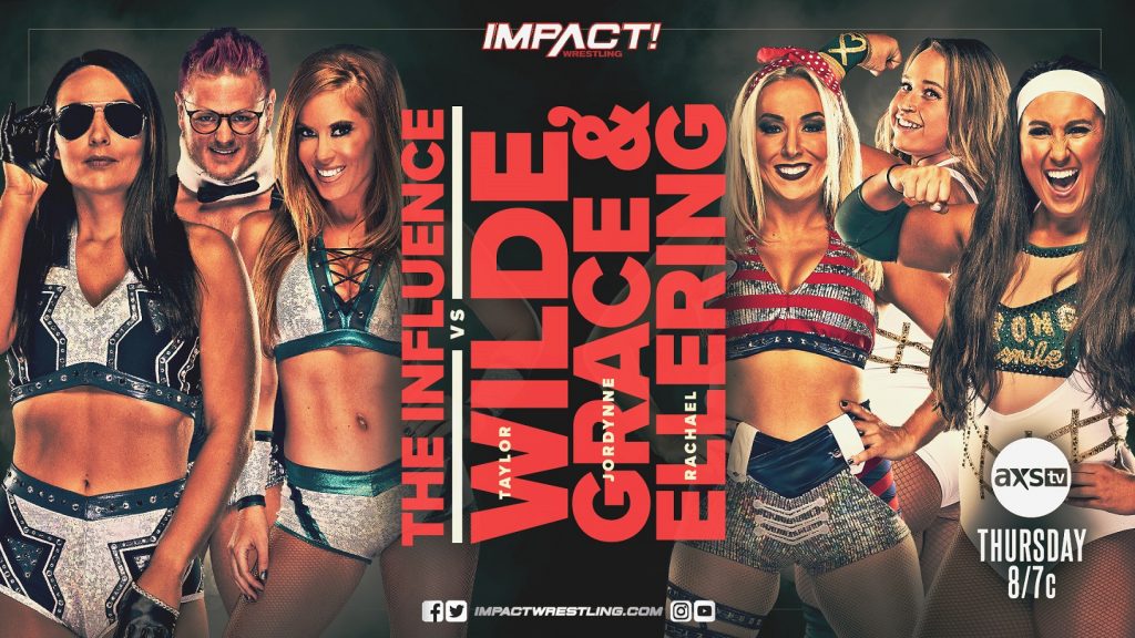 After their 3-on-1 victory over Taylor Wilde last week, The Influence looked to eliminate her once and for all. But their plans were thwarted when Jordynne Grace and Rachael Ellering came to the aid of the Knockouts veteran, sending The Influence retreating. This Thursday, the odds will be even when Taylor Wilde, Jordynne Grace and Rachael Ellering take on Madison Rayne, Tenille Dashwood and Kaleb With a K in what will certainly be an action-packed six-person tag!