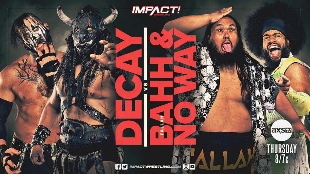Decay has been a thorn in the side of Fallah Bahh in recent weeks, preying on his fears and using it to their advantage. Last week, Fallah Bahh approached Tasha Steelz to apologize for costing them their eight-person tag against the demonic group and claimed that he would make things right. This Thursday, Fallah Bahh looks to do just that when he teams with No Way to battle Decay’s Black Taurus and Crazzy Steve in terrifying tag team action!