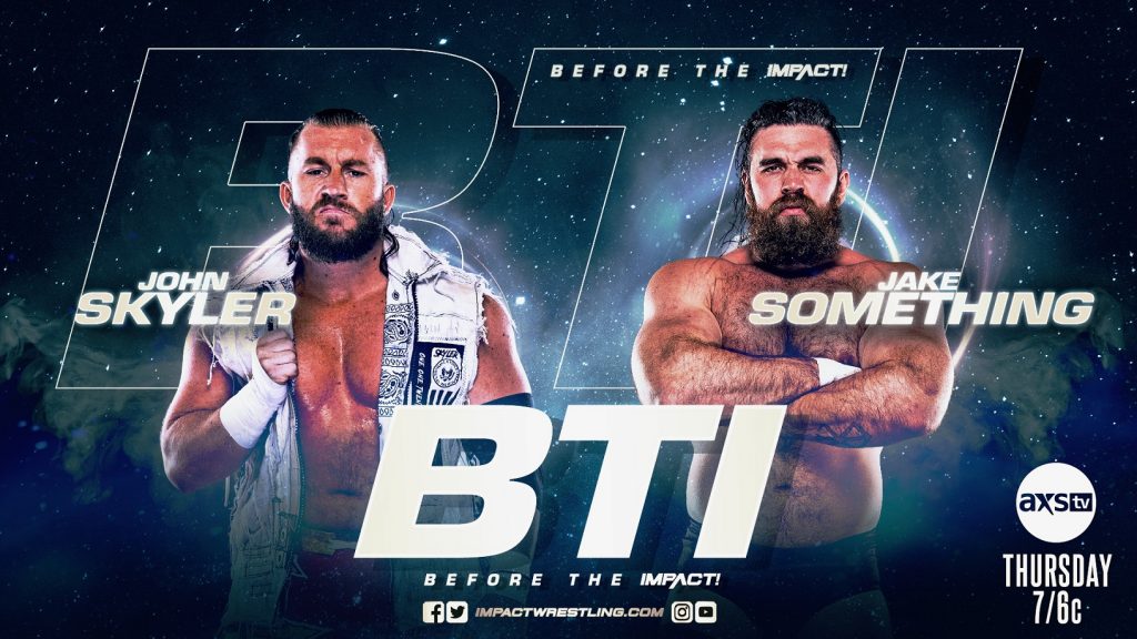 The action begins on Before the IMPACT, this Thursday at 7/6c on AXS TV as IMPACT newcomer John Skyler looks to continue his wave of momentum against the powerful Jake Something. After defeating Matt Cardona in what many considered to be a huge upset, John Skyler interrupted an interview with Jake Something, claiming that Gia Miller should be talking to him instead. Will John Skyler put his money where his mouth is and score another huge victory? Or will Jake Something teach him a painful lesson in respect?