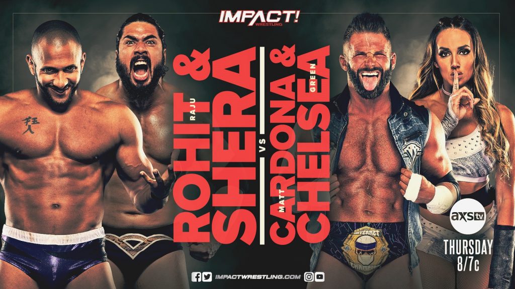 Following Matt Cardona‘s recent victory over Rohit Raju, the intimidating force known as Shera attacked him from behind in a brutal post-match assault. Just as Shera was about to add insult to injury, Chelsea Green made the save and sent both Rohit and Shera retreating to the back. Now the engaged couple is set to collide with the “Desi Hitman” and “The Indian Lion” in a heated tag team grudge match this Thursday!
