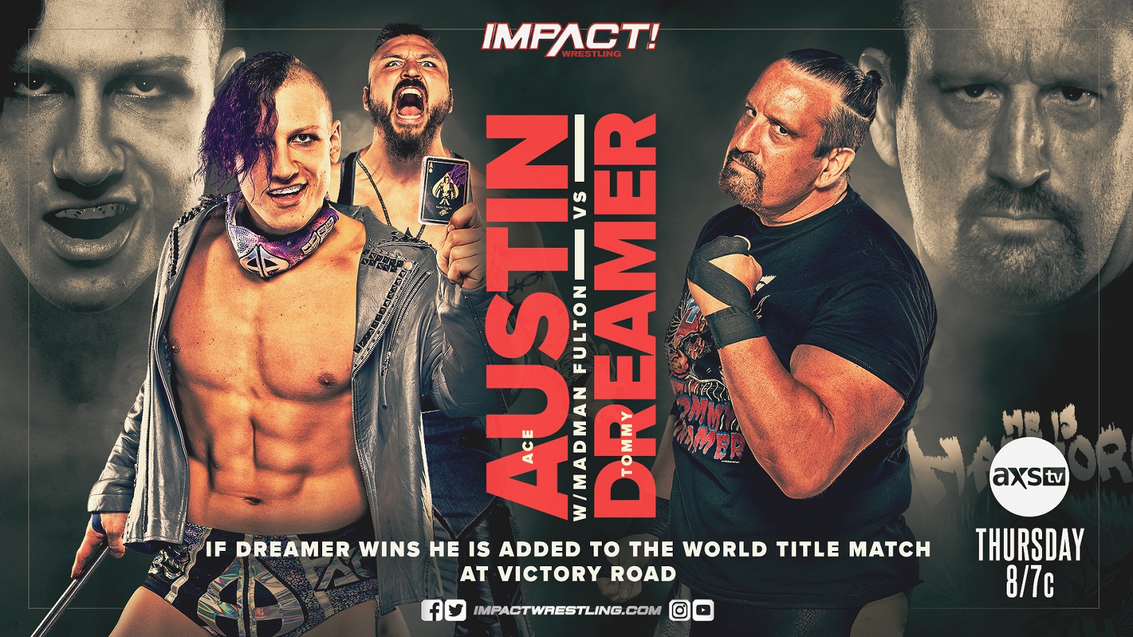 After becoming the new #1 contender for the IMPACT World Title, Ace Austin interrupted an emotional moment between longtime friends, IMPACT World Champion Christian Cage and Tommy Dreamer. Following an all-out brawl that saw Christian Cage and Tommy Dreamer clear the ring of Ace Austin and Madman Fulton, “The Inevitable” one demanded a match with Dreamer this Thursday. Scott D’Amore granted him the match under one condition – if Tommy Dreamer can defeat Ace Austin, the IMPACT World Title match between Christian Cage and Ace Austin at Victory Road will be become a Triple Threat!