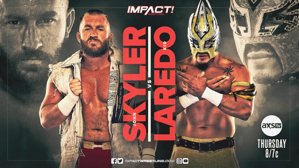 Following his triumphant return on last week’s BTI, Laredo Kid steps into the ring this Thursday on IMPACT! for a highly-anticipated rematch with promising newcomer, John Skyler! In their first encounter, both Laredo Kid and John Skyler were on the verge of victory but it was Lucha Libre AAA’s high-flying luchador who secured the win with a daring belly-to-belly Moonsault. Will lightning strike twice for Laredo Kid or will John Skyler even the score?