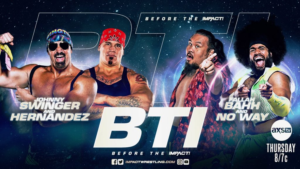 Tune in to BTI this Thursday at 7/6c on AXS TV as the purveyors of Swinger’s Palace, Johnny Swinger and Hernandez, take on Fallah Bahh and No Way in this week’s BTI exclusive match! Plus, Jon Burton, Gia Miller, Josh Mathews and George Iceman get you ready for all of the night’s action with exclusive analysis, previews, backstage intel and more.