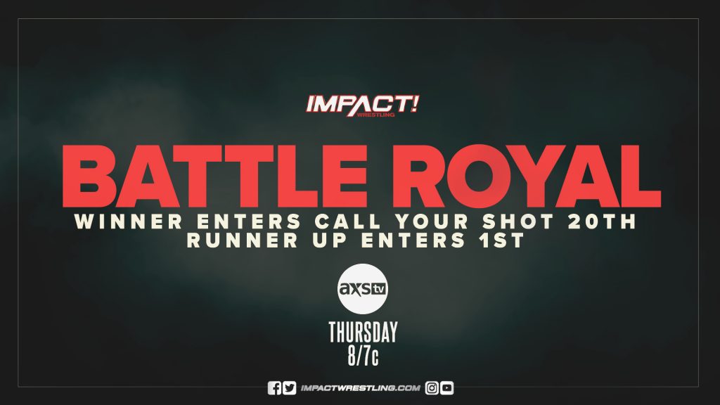 As 20 competitors prepare to clash in the Call Your Shot Gauntlet at Bound For Glory, we find out who will enter the match in the coveted #20 spot – and the disadvantageous #1 spot – in a Battle Royal this Thursday. Win the Battle Royal and you enter the Call Your Shot Gauntlet last – but come in second place and you enter first. The stakes are high on IMPACT!