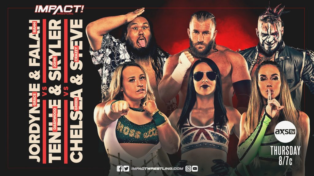 Before Jordynne Grace, Fallah Bahh, Tenille Dashwood, John Skyler, Chelsea Green and Crazzy Steve compete in the finals of the Digital Media Championship Tournament on the Countdown to Glory pre-show, we get a preview of things to come in a three-way tag bout this Thursday! As Grace joins forces with Fallah, Dashwood with Skyler and Green with Steve, who will gain momentum heading into the monumental contest?