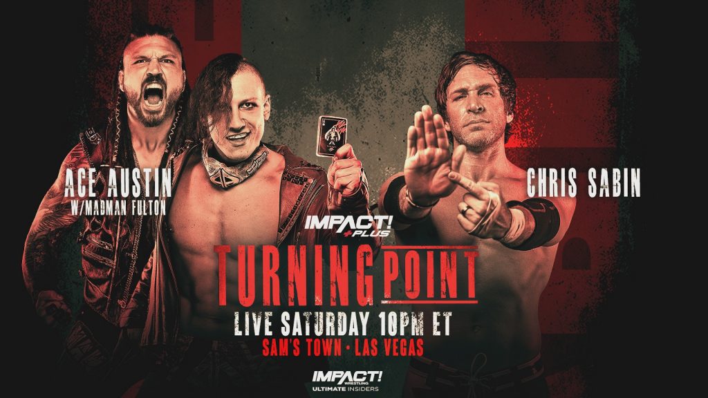 When Ace Austin defeated Chris Sabin in the main event of IMPACT!, he made sure that the whole world knew about it. Of course, it wasn’t without the help of Madman Fulton. Ace even went as far as having an “I beat Chris Sabin” t-shirt made, in an attempt to rub salt in his opponent’s wound. After Sabin toppled Fulton to gain a measure of revenge, he challenged Ace to a singles rematch at Turning Point. Will Chris Sabin even the score or is another victory for Ace Austin “inevitable”?