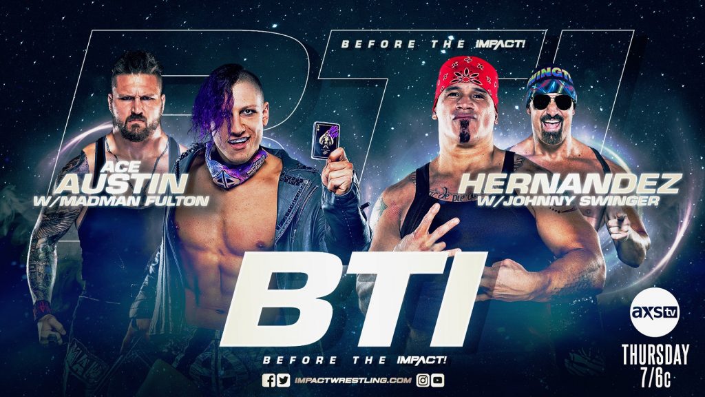 The action begins Before the IMPACT, this Thursday at 7/6c on AXS TV and 7:30pm ET on YouTube. Following a confrontation over cold, hard cash, Ace Austin will go one-on-one with Hernandez in an exclusive matchup! Plus, Gia Miller, Josh Mathews and George Iceman get you ready for all things IMPACT with a recap of the latest action, a new Iceman’s Intel and more!
