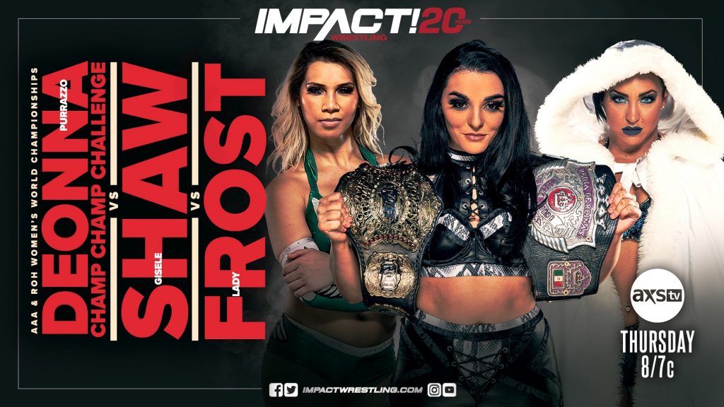 Brace yourself for the biggest Champ Champ Challenge to date as Deonna Purrazzo defends both the AAA Reina de Reinas and the ROH Women’s World Championships against Lady Frost and Gisele Shaw in a Triple Threat match! After a string of interruptions at the hands of Frost and Shaw, “The Virtuosa” vowed to take them out once and for all. Will Purrazzo continue her wave of dominance or will a new “Champ Champ” be crowned?