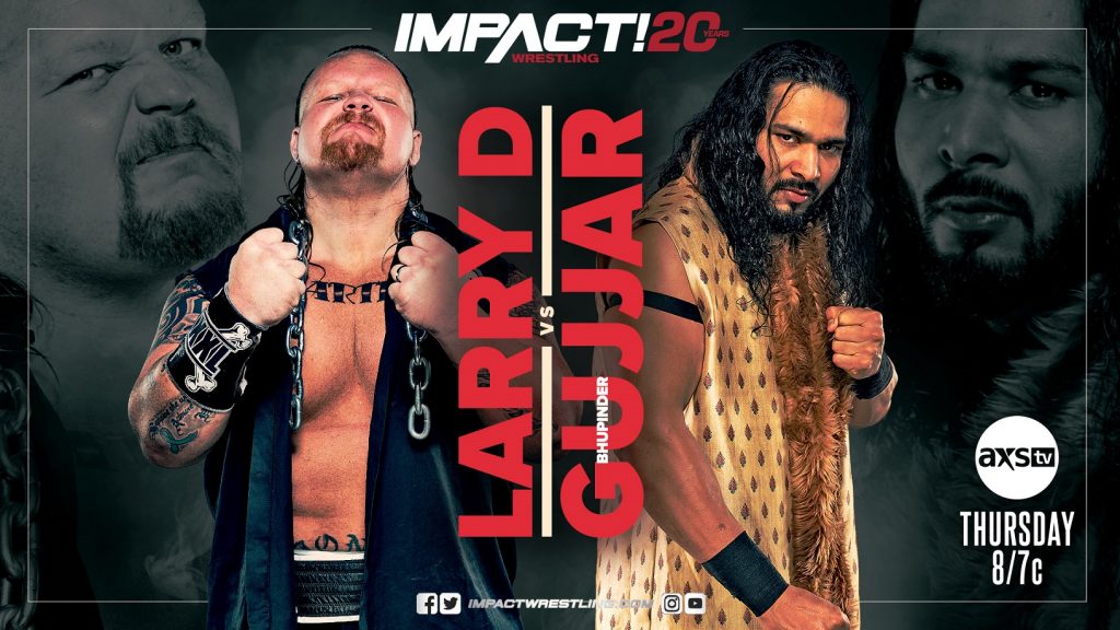 Larry D made an unexpected reappearance in IMPACT Wrestling last week when he knocked out Raj Singh with his signature right hand. Now Larry must answer to India’s brightest blue chip athlete, Bhupinder Gujjar, when they square off in singles competition this Thursday. Will Gujjar continue to climb the ranks of the IMPACT roster or will Larry D bring his momentum to a screeching halt?