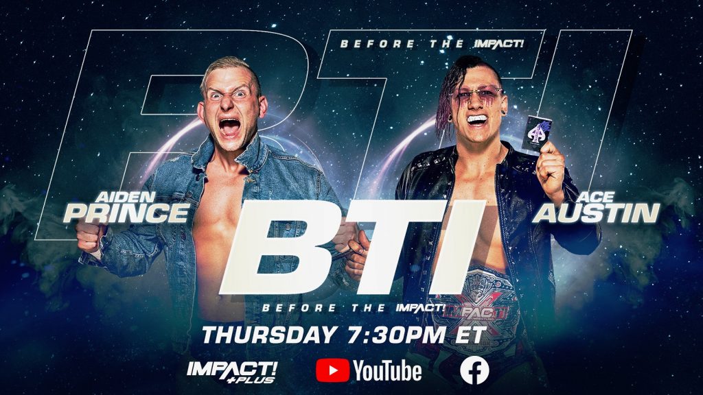 The action begins Before the IMPACT, streaming this Thursday at 7:30pm ET exclusively on IMPACT Plus, YouTube and Facebook. Following a successful X-Division Title defense at Under Siege, Ace Austin goes one-one-one with Aiden Prince as he gears up for the NJPW Best of the Super Juniors tournament! Plus, Gia Miller, Josh Mathews and George Iceman get you ready for all things IMPACT on the road to Slammiversary.