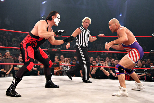 Feeling that they didn’t get the respect they deserved, The Main Event Mafia decided to take it by force in 2009. Sting, Kurt Angle, Booker T, Kevin Nash and Scott Steiner declared war on the young stars of TNA. AJ Styles, Samoa Joe, The Motor City Machine Guns, Eric Young, Petey Williams and more banded together with the support of Team 3D to form the TNA Frontline – the first wall of defense against the Main Event Mafia. Angle and company used mob tactics to attack the TNA originals, including taking out Petey Williams. This didn’t align with Sting’s vision of the Main Event Mafia however. While Sting was willing to fight for the respect he felt they had earned as legends, Angle’s willingness to push the violence too far left him uneasy. The Main Event Mafia took over IMPACT on January 29, with Booker T and Kevin Nash on commentary as well as Scott Steiner as ring announcer.