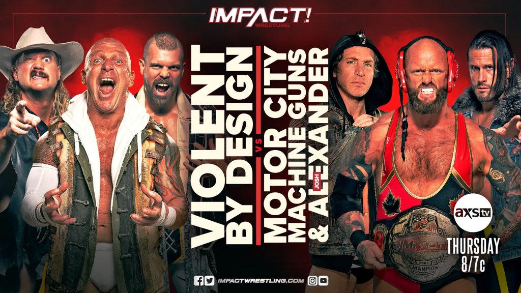 IMPACT World Champion Josh Alexander has defeated every member of Violent By Design in singles competition – but the war isn’t over just yet. After Eric Young hadn’t been seen or heard from since failing to capture the IMPACT World Title at Slammiversary, the leader of VBD made his shocking return last week. Joe Doering and Deaner went on the hunt for Alexander but quickly found themselves in a physical altercation with the Motor City Machine Guns. This Thursday, the “Walking Weapon” teams with The Guns as they attempt to bring an end to Violent By Design in a six-man tag team collision that will open the show!