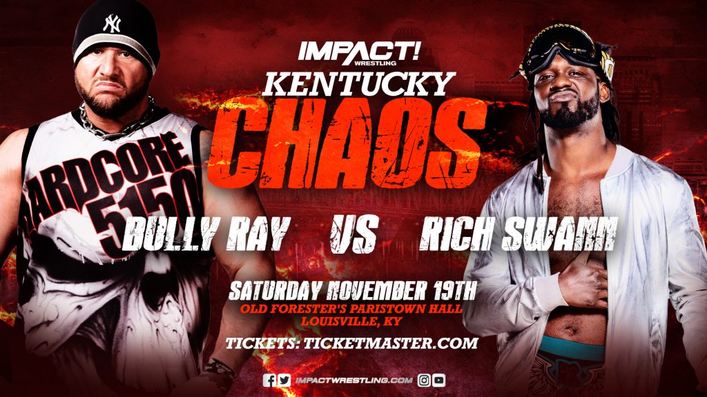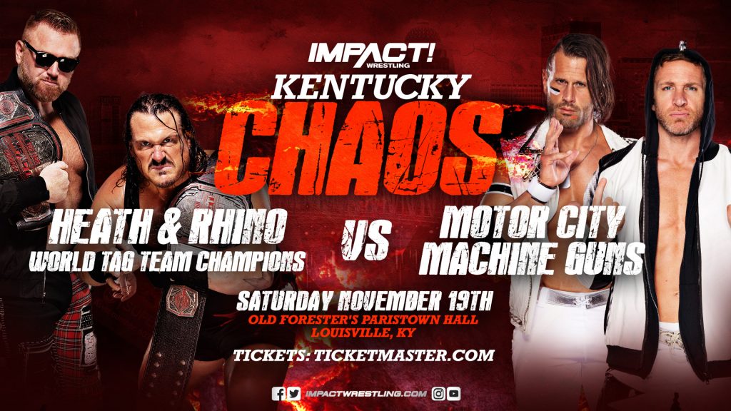 Then, the television trucks of IMPACT! on AXS TV roll in as IMPACT Wrestling presents Kentucky Chaos, featuring all your favorite IMPACT stars in action! Check out just some of the incredible matchups you’ll see at Kentucky Chaos: