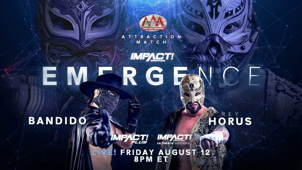 Emergence will play host to a Lucha Libre AAA Attraction match as Bandido and Rey Horus compete in an IMPACT ring for the first time ever. What will happen when two of the world’s top Luchadores collide in Chicago? One thing is for certain, you won’t want to miss a moment of the action!