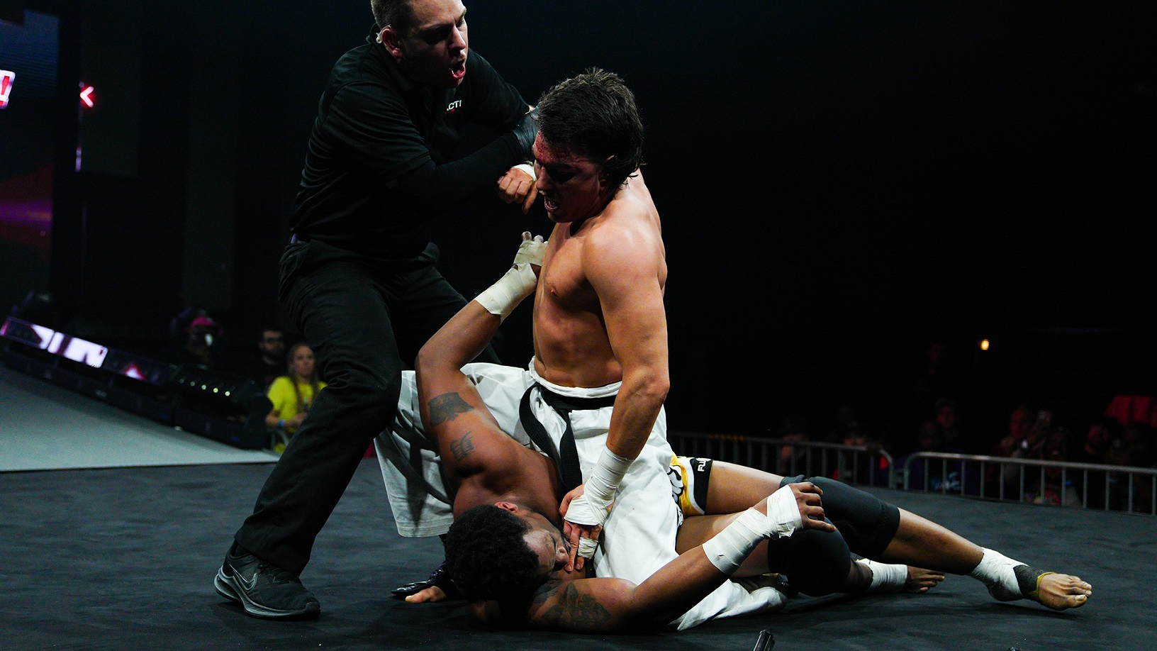 The heated rivalry between Mike Bailey and Kenny King will be settled in a Pit Fight. There are no pinfalls, no disqualifications and no ropes – the only way to win is by knockout or submission! King dumps Bailey to the outside and tosses him into the steel ring steps. King drops him face-first onto the ramp, then hits a pinpoint knee strike to the head. Bailey is busted open as King continues the assault. King remains in control with a vicious Dragon Screw leg whip. Bailey counters with a Sparta Kick as King tumbles to the floor. Bailey quickens the pace, laying in a flurry of kicks before locking in an armbar. King breaks the hold with a big powerbomb. King launches himself off the apron, connecting with a blockbuster on the floor. Bailey charges into the corner but King sidesteps, causing him to kick the steel post with full force. King secures the Figure Four Leg Lock but Bailey reverses the pressure as they roll to the outside. Bailey gets a running start from the top of the ramp for an explosive dropkick. Bailey climbs to the top of the ring post, then soars with a corkscrew to the floor. Bailey goes for Ultima Weapon but King cuts him off with a mid-air knee strike. King hits a spinebuster on the side of the ring, then locks in a submission. Bailey breaks it with a steel chair shot and hits double knees to the chest. Bailey places a steel chair over King’s head, then delivers one final superkick to win by knockout.