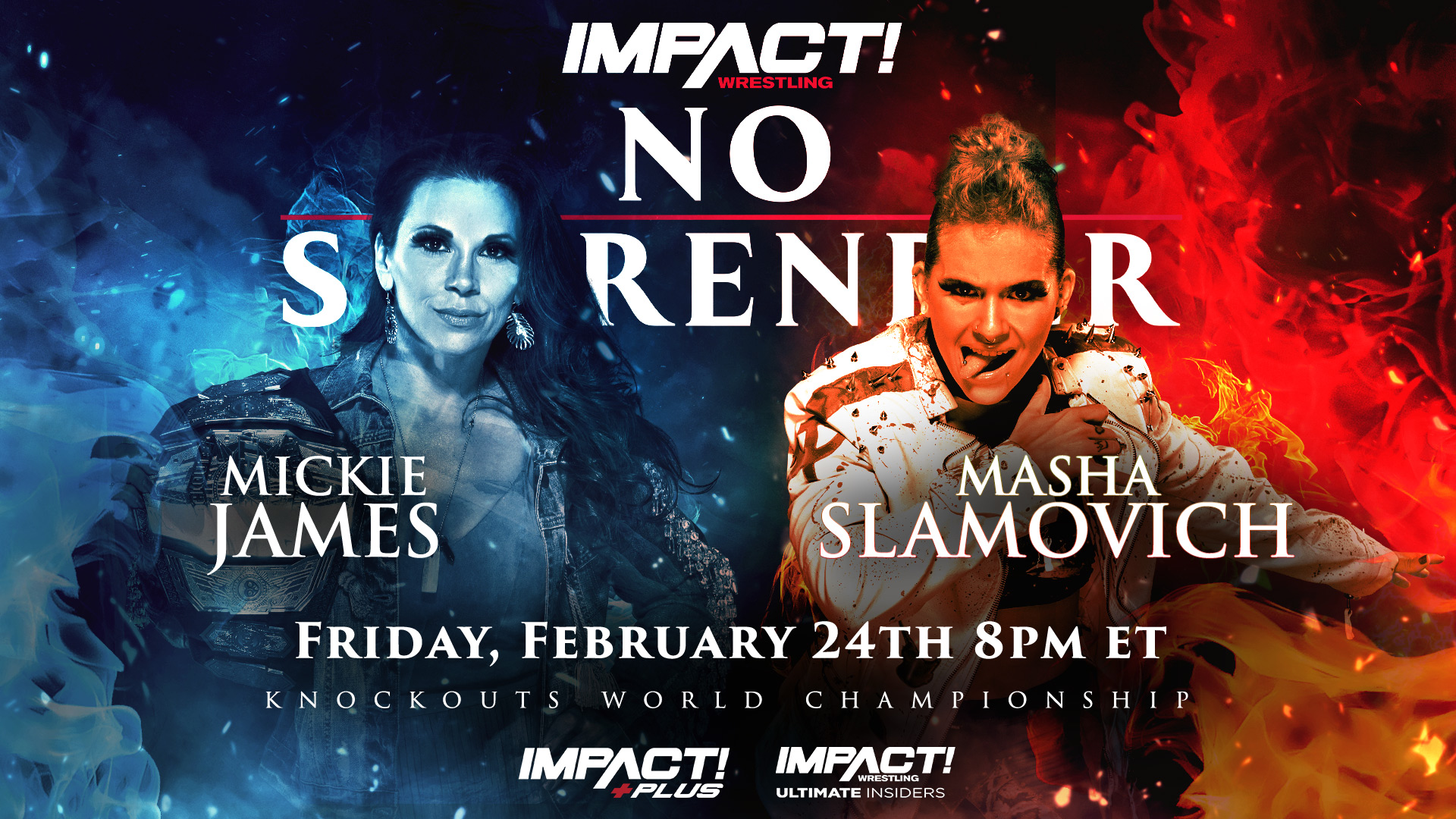 BREAKING: @MickieJames will defend the Knockouts World Title against #1 Contender @mashaslamovich February 24th at #NoSurrender LIVE on IMPACT Plus, YouTube for IMPACT Ultimate Insiders & @FiteTV!