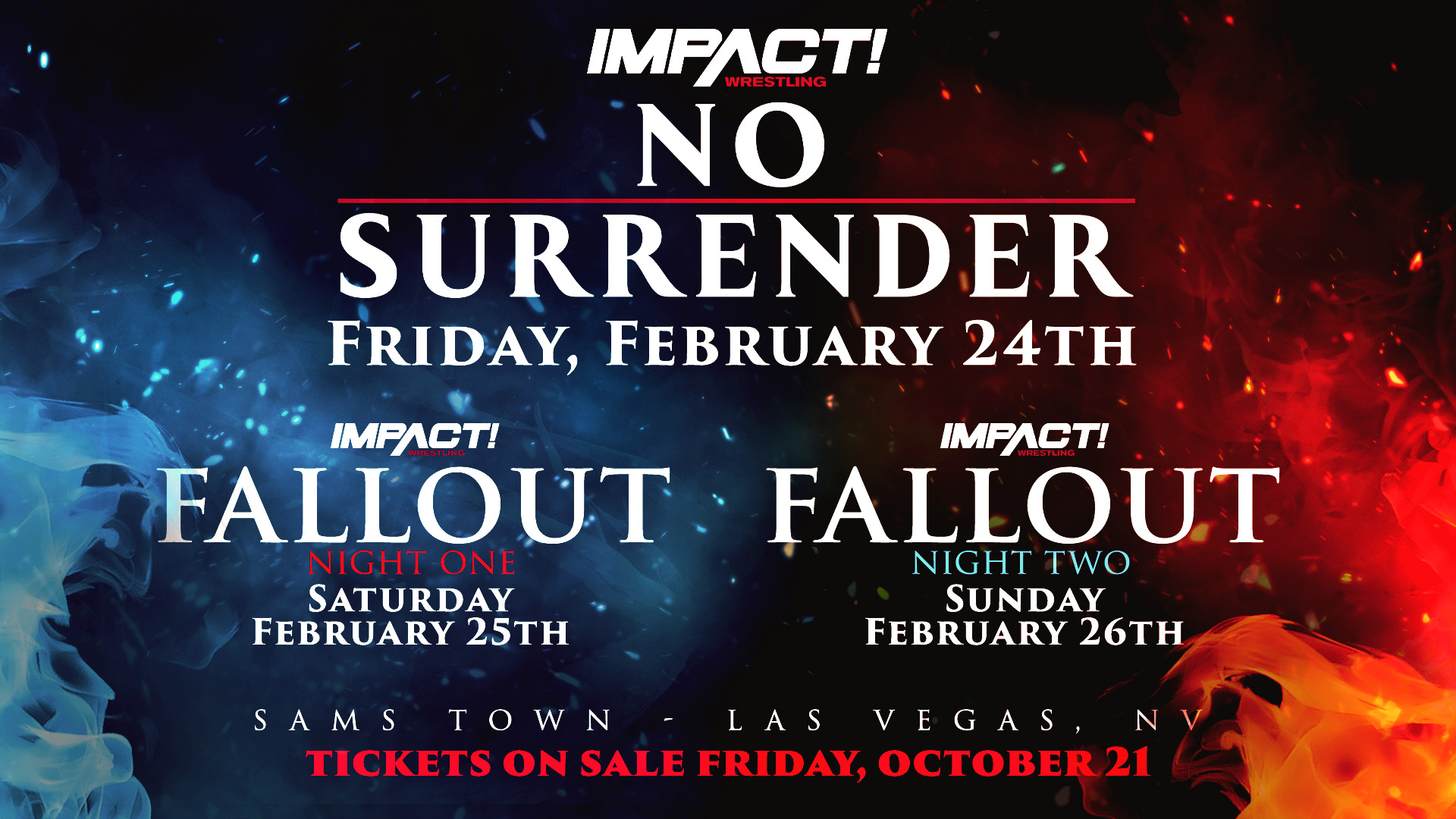 FALLOUT, NIGHT 1: https://www.ticketmaster.com/impact-wrestling-no-surrender-weekend-las-vegas-nevada-02-25-2023/event/17005D4DC9042657