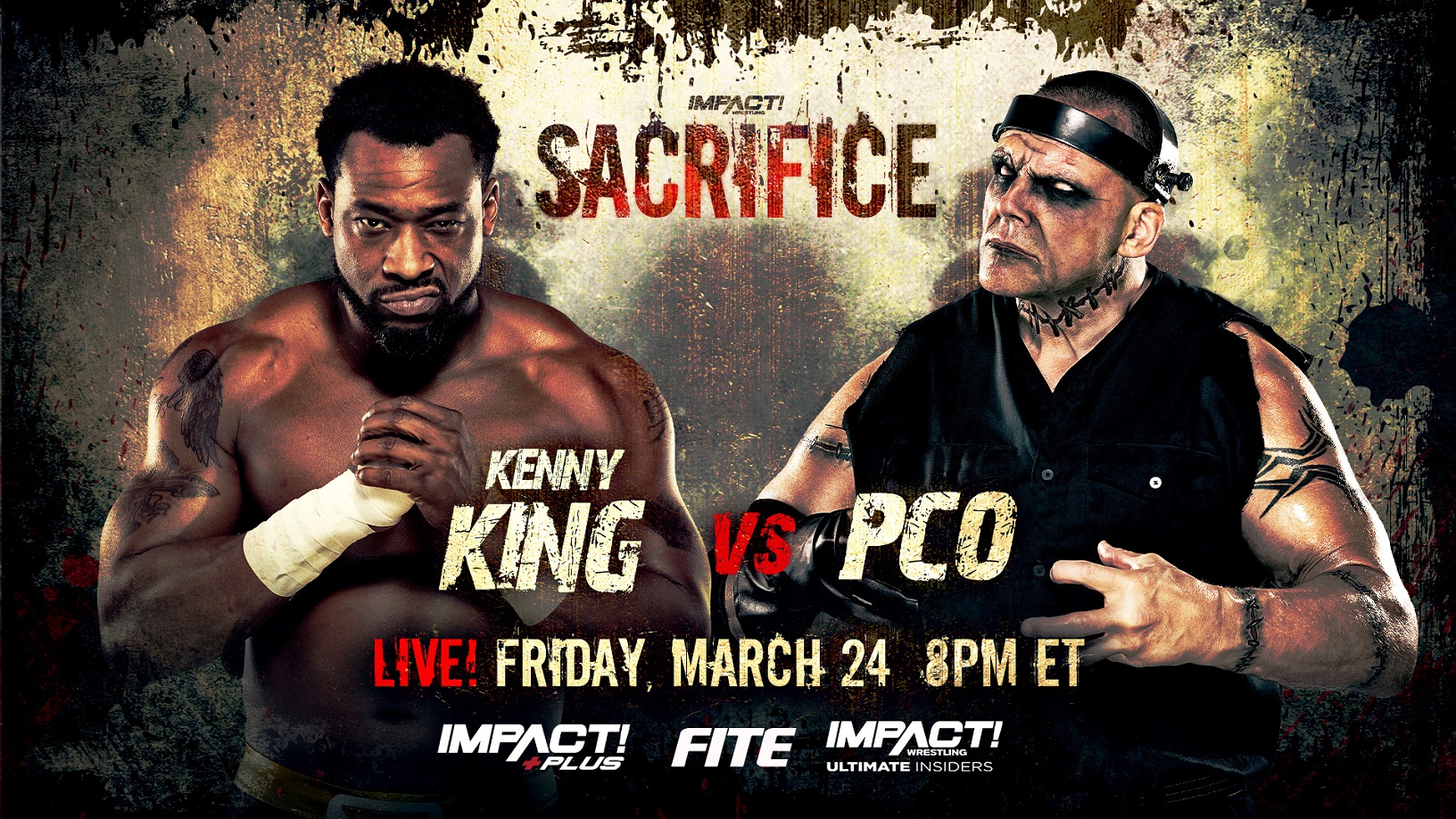 Following months of mental abuse from Eddie Edwards, PCO has made it his mission to torment the former leader of Honor No More. Edwards has done everything in his power to put an end to PCO, including burying him alive in the Las Vegas desert. But if there’s one thing we know about Perfect Creation One, it’s that he’s not human. Recently on IMPACT!, their ongoing battle was brought to a screeching halt when PCO was run over by an unknown assailant. One week later, their former stablemate in Honor No More, Kenny King, assisted Edwards in blindsiding PCO with another brutal assault. Was King the driver in the hit-and-run? And what are his motives for taking out PCO? In any case, Sacrifice will play host to a highly-combustible bout between PCO and Kenny King and revenge is in the air.
