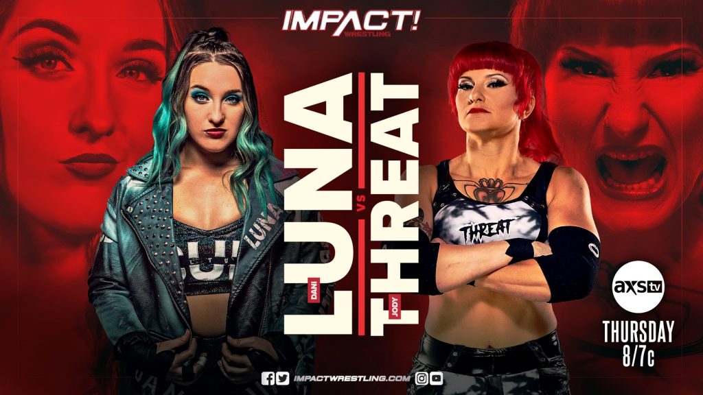Alongside her allies in SUBCULTURE, Dani Luna arrived in IMPACT Wrestling at Under Siege. While Mark Andrews and Flash Morgan Webster ultimately came up short in their quest to dethrone ABC as IMPACT World Tag Team Champions, their future certainly looking bright in the tag team division. This Thursday, we will see Luna make her in-ring debut as she faces off against the physical Jody Threat. Threat has been unstoppable since her arrival and remains undefeated. Will Luna be the one to bring an end to her dominance? Or will Threat prove once again why she’s a force to be reckoned with?