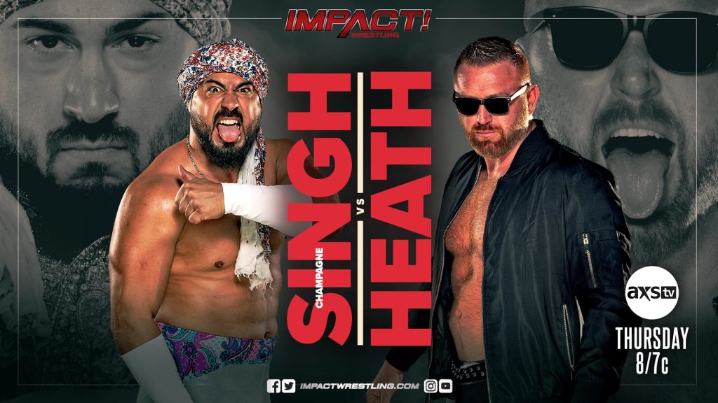 It was just a few weeks ago when Champagne Singh aided Steve Maclin in taking out Heath before Rhino‘s IMPACT World Title opportunity. That eventually led to Rhino being taken out of action with a brutal assault from the IMPACT World Champion. This Thursday, Heath is out for revenge when he goes one-on-one with Champagne Singh. With his sights set on winning the first-ever 8-4-1 match, will Heath stand tall on IMPACT? Or will Singh play spoiler en route to Columbus?