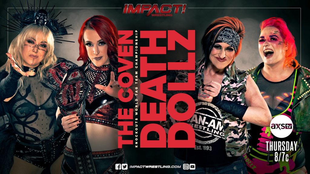 After emerging from the Undead Realm, Courtney Rush teamed up with Jessicka to topple The Coven in non-title action at Under Siege. With that victory, the Death Dollz have earned a Knockouts World Tag Team Title opportunity this Thursday on IMPACT. Can this new iteration of the Death Dollz reclaim their spot at the top of the Knockouts tag team division? Or will the dealers of dark magic remain in control?