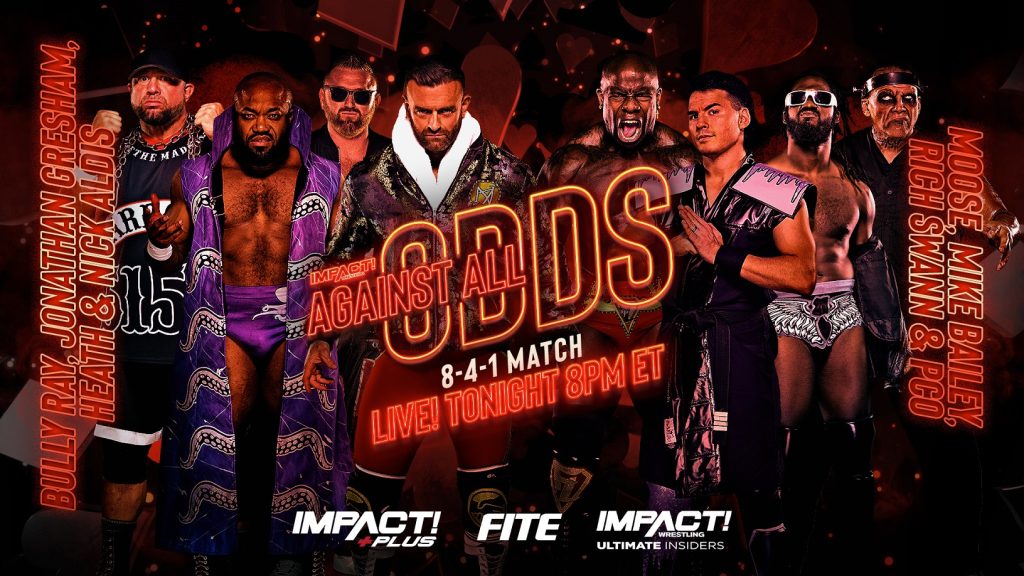 IMPACT Wrestling will make history at Against All Odds when an innovative new match type determines the #1 Contender for the IMPACT World Title at Slammiversary. It’s called an 8-4-1 match and the rules are as follows: the match begins as an 8-man tag. The winning team then competes against one another in a 4-way match with the winner of that advancing to the main event of Slammiversary. On one side, Bully Ray, Jonathan Gresham, Heath and Nick Aldis will unite. Standing across the ring from them will be Moose, Mike Bailey, Rich Swann and PCO. Not only is this one of the most star-studded matchups in recent memory, but enemies will be forced to work together if they want a shot at IMPACT Wrestling’s most coveted prize.