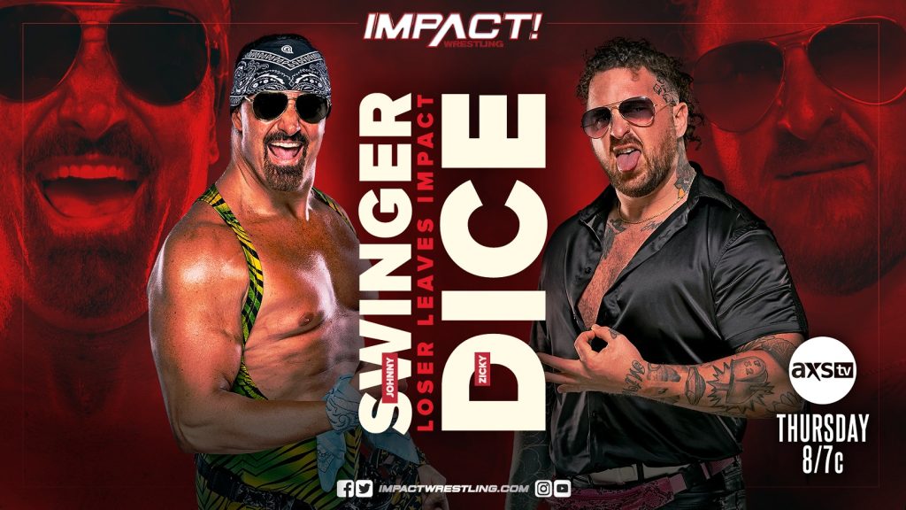 For months, Johnny Swinger and Zicky Dice have tried every trick in the book in an attempt to jumpstart Swinger’s quest for 50 wins and a shot at the IMPACT World Title. But after bending the rules one too many times, Swinger and Dice must now pay for their actions. In a match made official by IMPACT President Scott D’Amore, Johnny Swinger will go one-on-one with Zicky Dice this Thursday. If Swinger wins, he will receive his long-awaited IMPACT World Title opportunity – but whoever loses will be forced to leave IMPACT Wrestling.