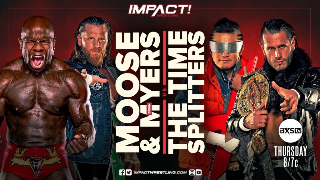 The closing moments of last week’s IMPACT! saw Bully Ray, Moose and Brian Myers make a powerful statement as they delivered a beatdown to Josh Alexander, IMPACT World Champion Alex Shelley and KUSHIDA. While their motivations remain a mystery, we do know that Moose and Myers will be looking to inflict more punishment when they face off against The Time Splitters this Thursday. Meanwhile, Shelley must focus on the task at hand but doing so will be no easy task as his list of adversaries continues to grow.