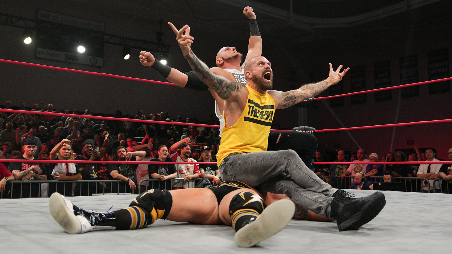 After the bell, Eric Young is blindsided by his former allies, Deaner and Kon of The Design. Deaner is barking out orders as Kon plants Young with not one, not two but three thunderous Chokeslams. Deaner adds insult to injury, taking out Young with the Antidote DDT as IMPACT! goes off the air.