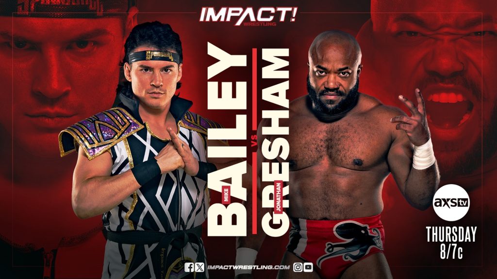 Mike Bailey looks to build momentum en route his huge matchup against pro wrestling megastar Will Ospreay at Bound For Glory! Bailey lights him up with a series of kicks on the floor. Bailey soars with a springboard corkscrew to the outside. Back in the ring, Gresham locks in a Boston Crab but Bailey makes it to the bottom rope. Both men attempt vertical suplexes with Gresham gaining the advantage and connecting with the move for two. Gresham wears him down with a chin lock, then takes him down a running back elbow. Gresham rolls up Bailey with a hold of the tights to win.