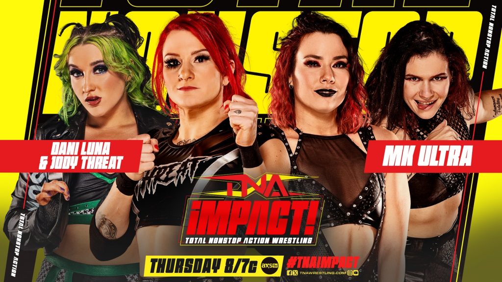 MK Ultra drop Threat with their tandem piledriver to return to winning ways after their title loss at Hard To Kill. MK Ultra also piledrive Luna after the match to assert their dominance.
