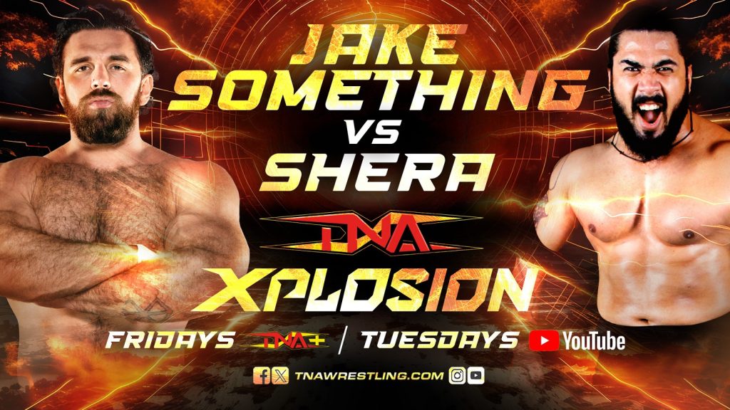 Heavyweight forces collide in this week’s Xplosion main event, it’s Jake Something vs. Shera! Shera feigns a sign of sportsmanship, allowing him to gain the early advantage. Shera hits a thudding powerslam for one.