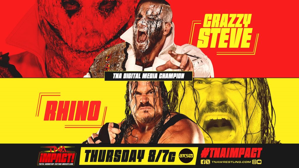 Rhino may not care about digital media – but he certainly cares about championships. Two weeks ago on Xplosion, Rhino was celebrating a victory over Shera when he was blindsided by the reigning Digital Media Champion, Crazzy Steve. As Steve stood over a fallen Rhino, he told the “War Machine” that he could be the first notch in his newly-won belt! This Thursday, these two menacing forces will face off with the title on the line – who will leave as Digital Media Champion?