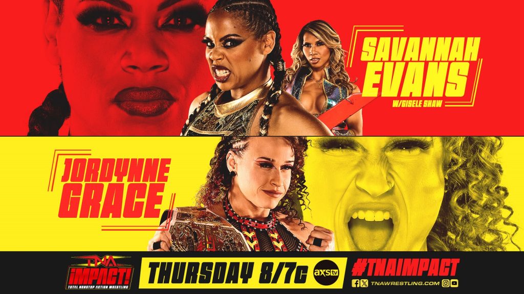 Last week, Knockouts World Champion Jordynne Grace joined forces with Trinity to vanquish Gisele Shaw and Savannah Evans in tag team action. In a shocking digital exclusive, Shaw would go on to fire the SHAWntourage, stating that they were getting in her way of success. Evans pleaded with Shaw to give her an opportunity at redemption – and that’s exactly what she’ll get. Before Gisele Shaw challenges Jordynne Grace for the Knockouts World Title at No Surrender, Evans will go one-on-one with “The Juggernaut” this Thursday! Can Evans topple the champ and keep her alliance with Shaw? Or will Grace ensure an even playing field in New Orleans?